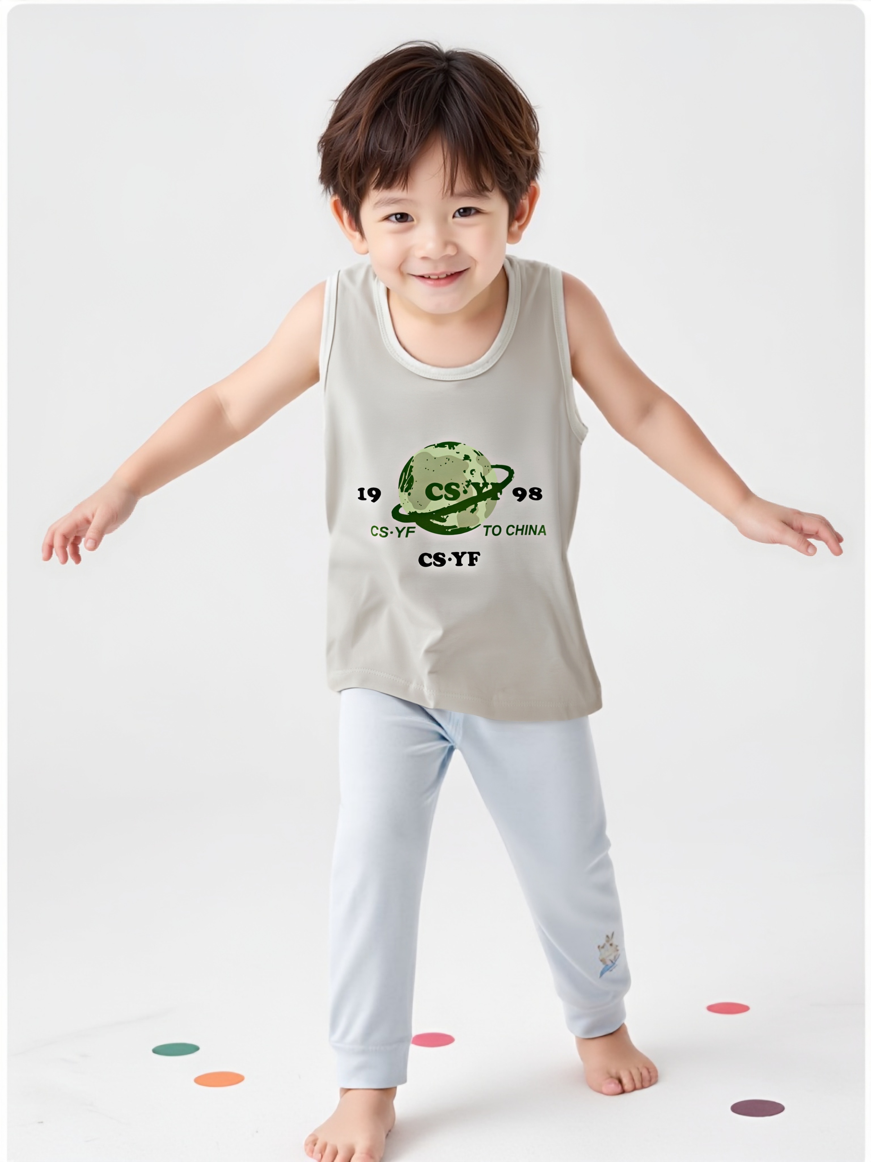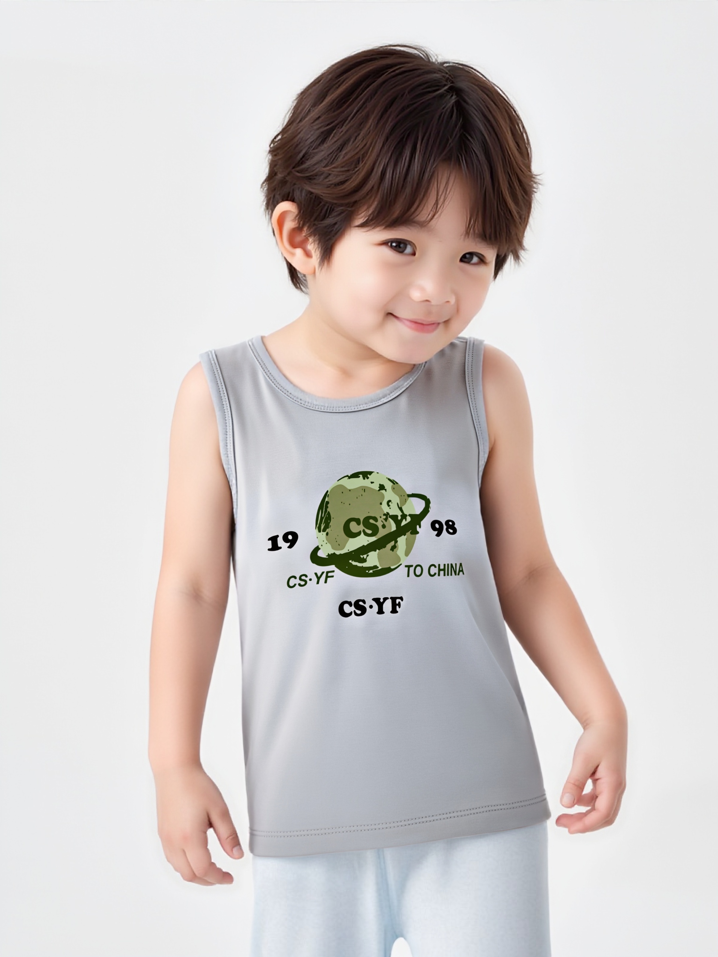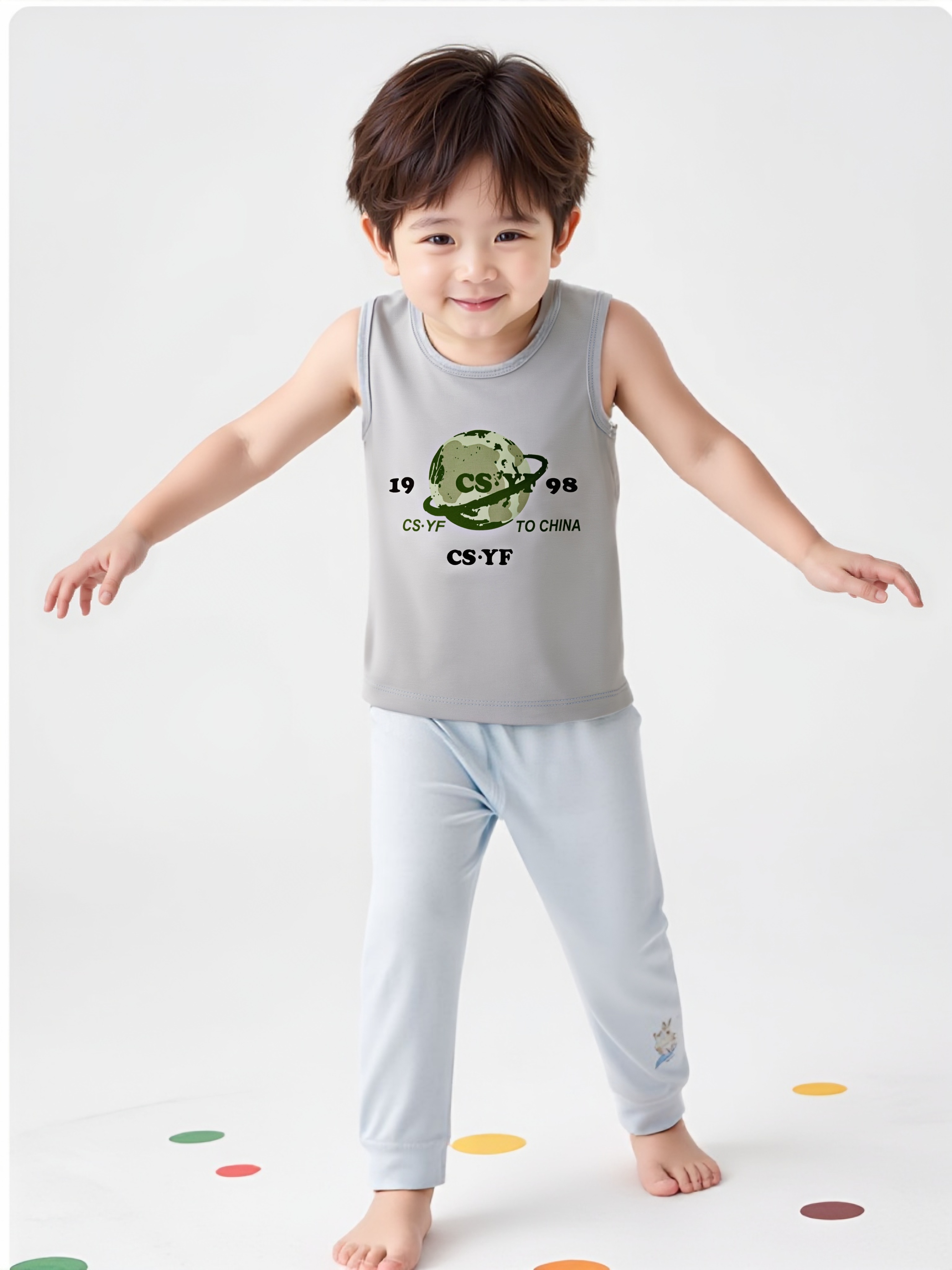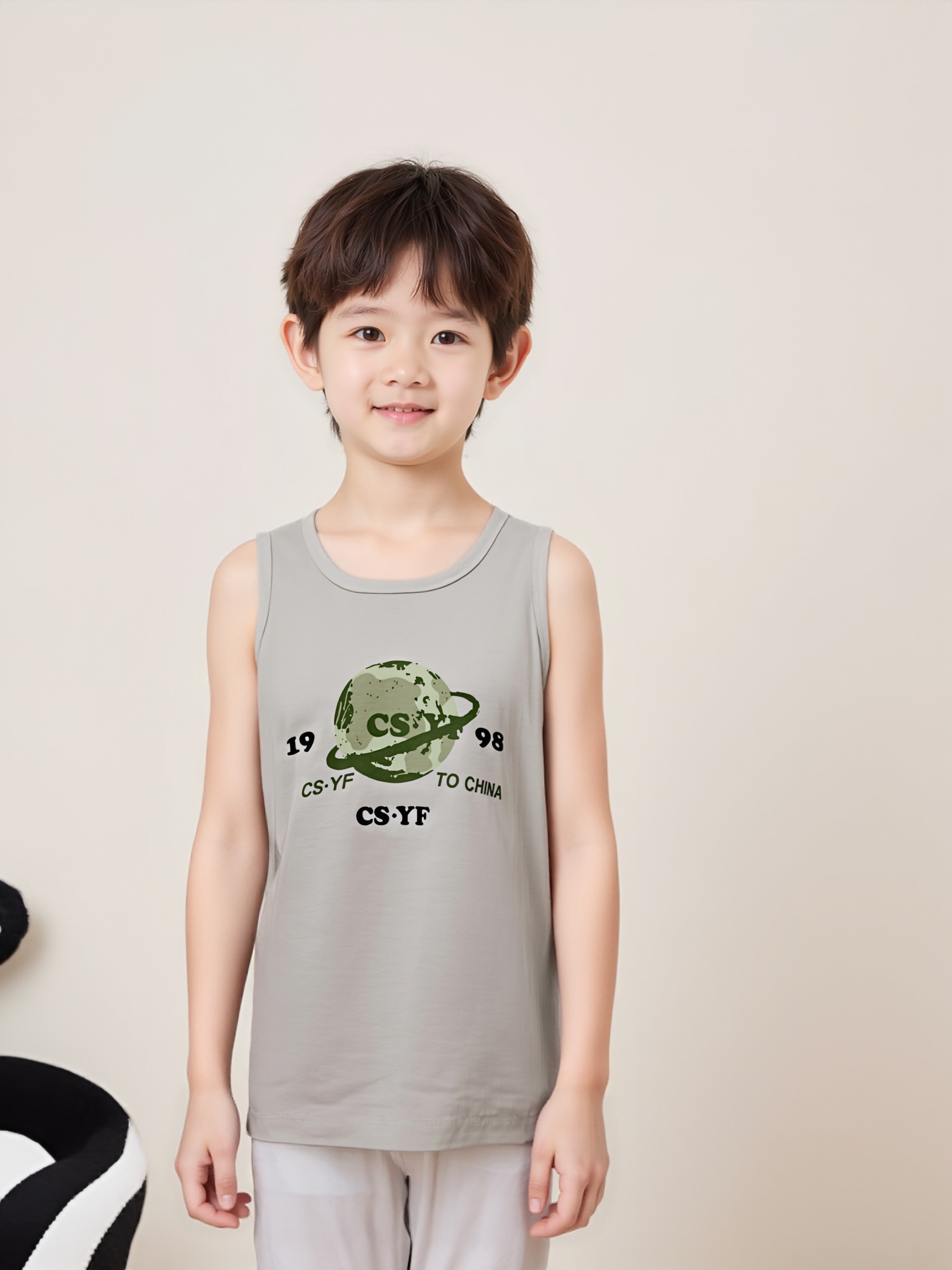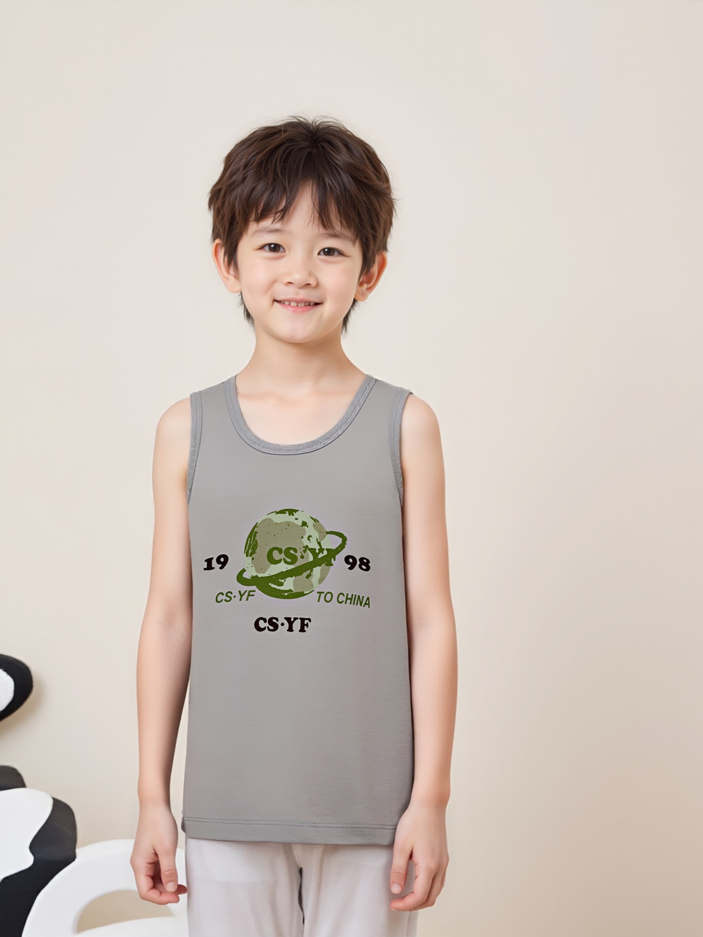 夏季居家无袖背心儿童睡衣精梳棉中大童夏薄款女童男童透气空调服