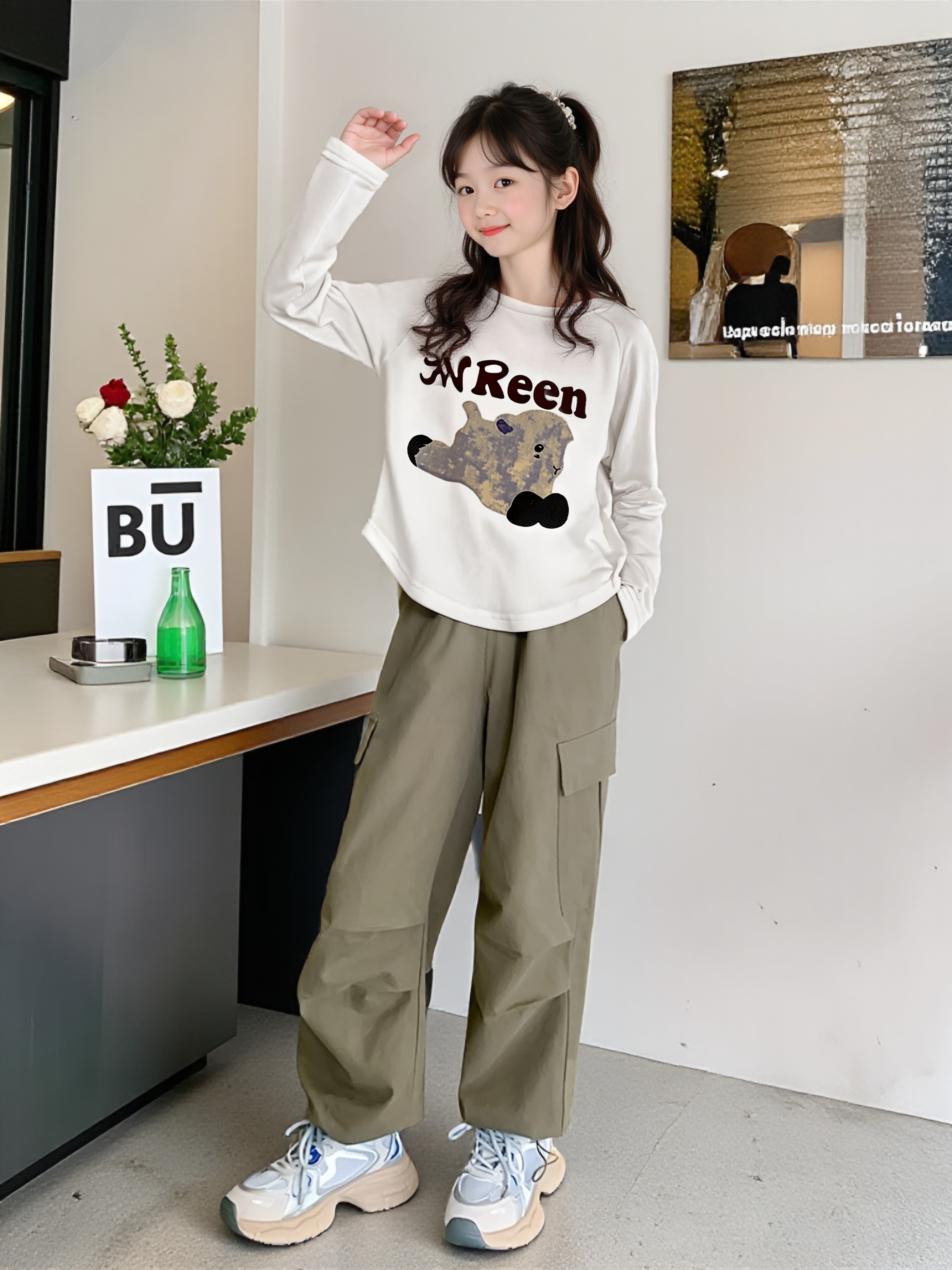 女童长袖T恤春秋季新款7岁8小女孩9修身11体恤时尚百搭打底衫