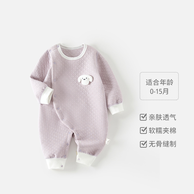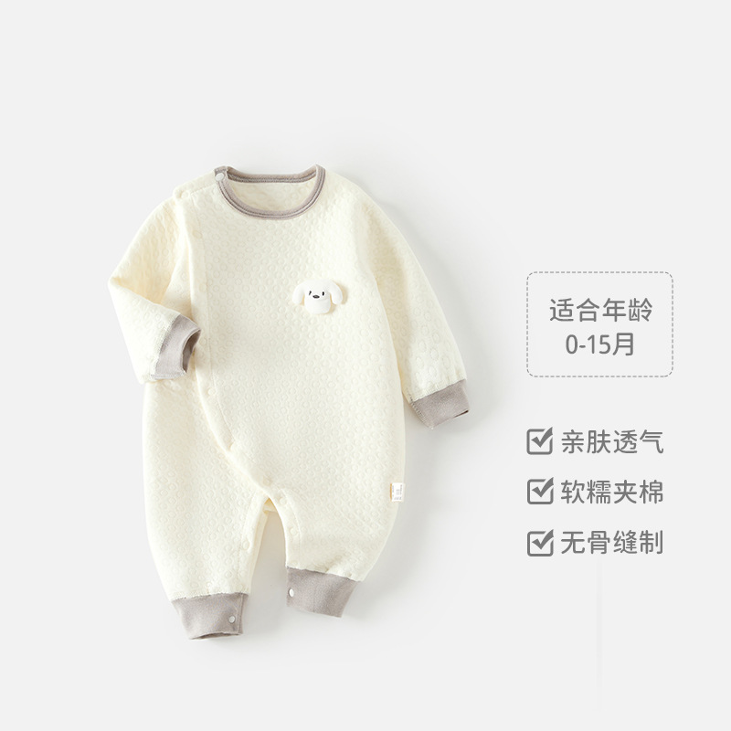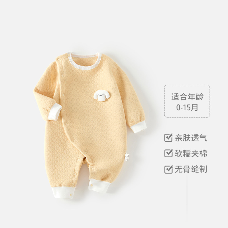 新生儿秋冬季保暖连体衣婴儿夹丝加厚哈衣爬服男女宝宝秋季居家服