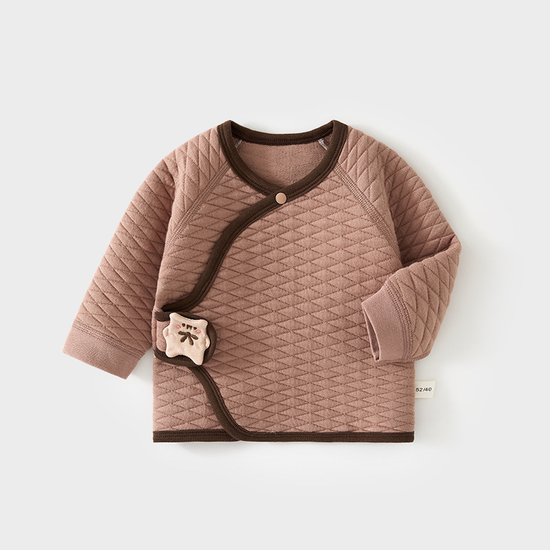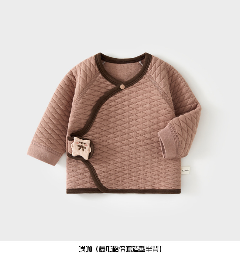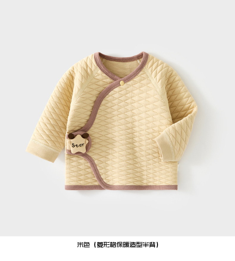 新生儿半背婴儿保暖宝宝内衣服无骨空气层加棉初生加厚和尚服上衣