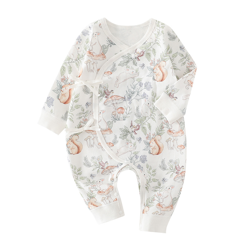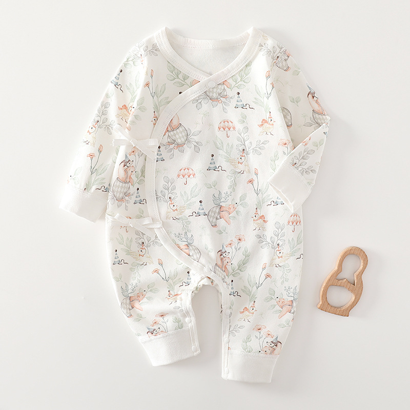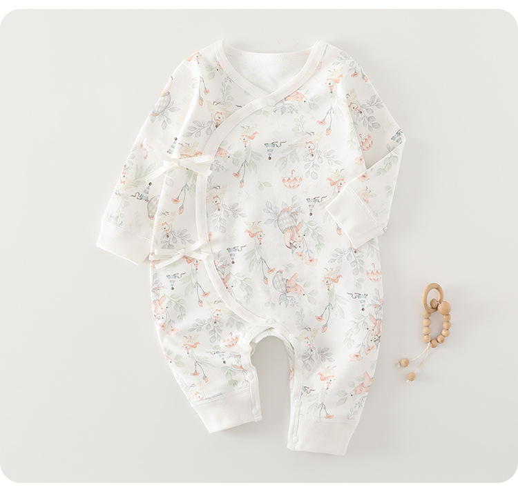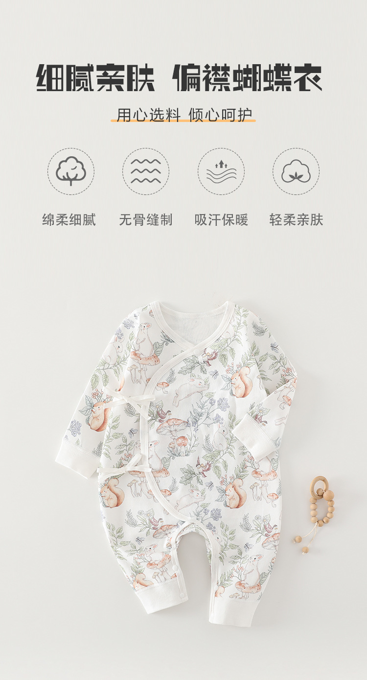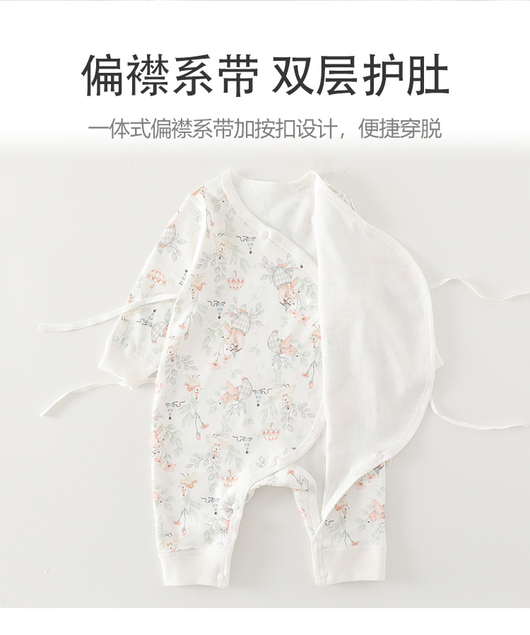 新生儿春秋连体衣衣服婴儿斜襟蝴蝶衣纯棉无骨宝宝哈衣洋气